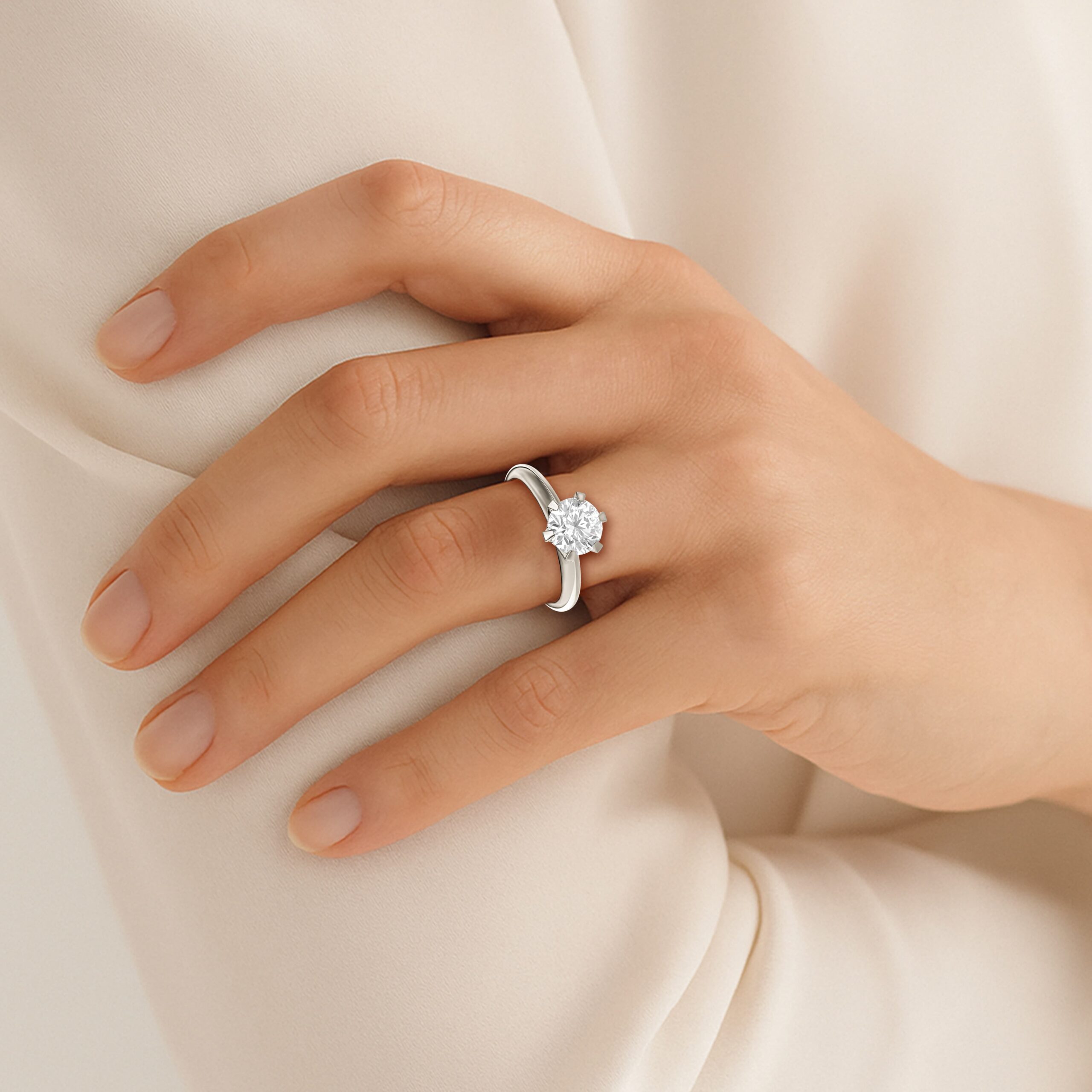 A refined classic with enduring appeal — this solitaire diamond ring features a 1.00ct round brilliant-cut centre stone secured in a graceful six-claw setting.