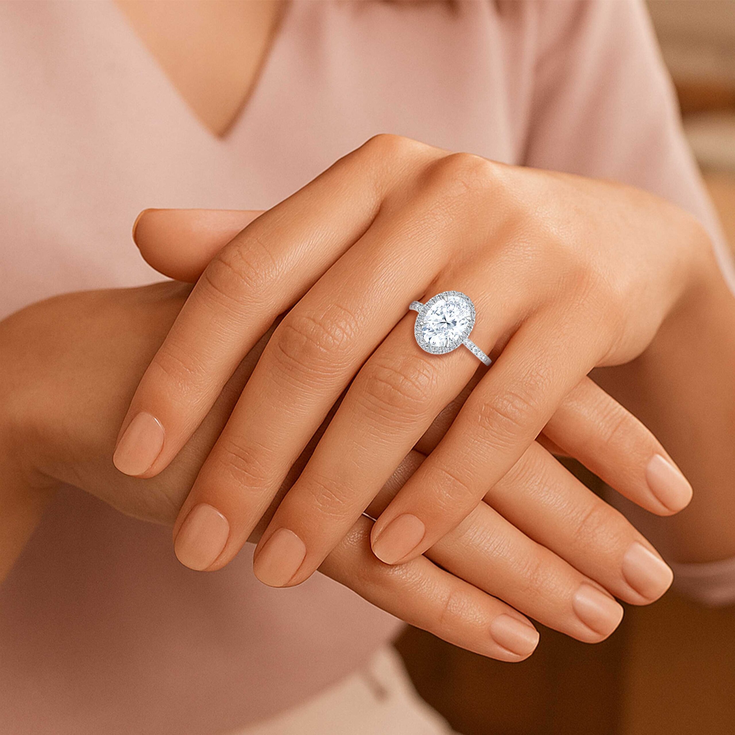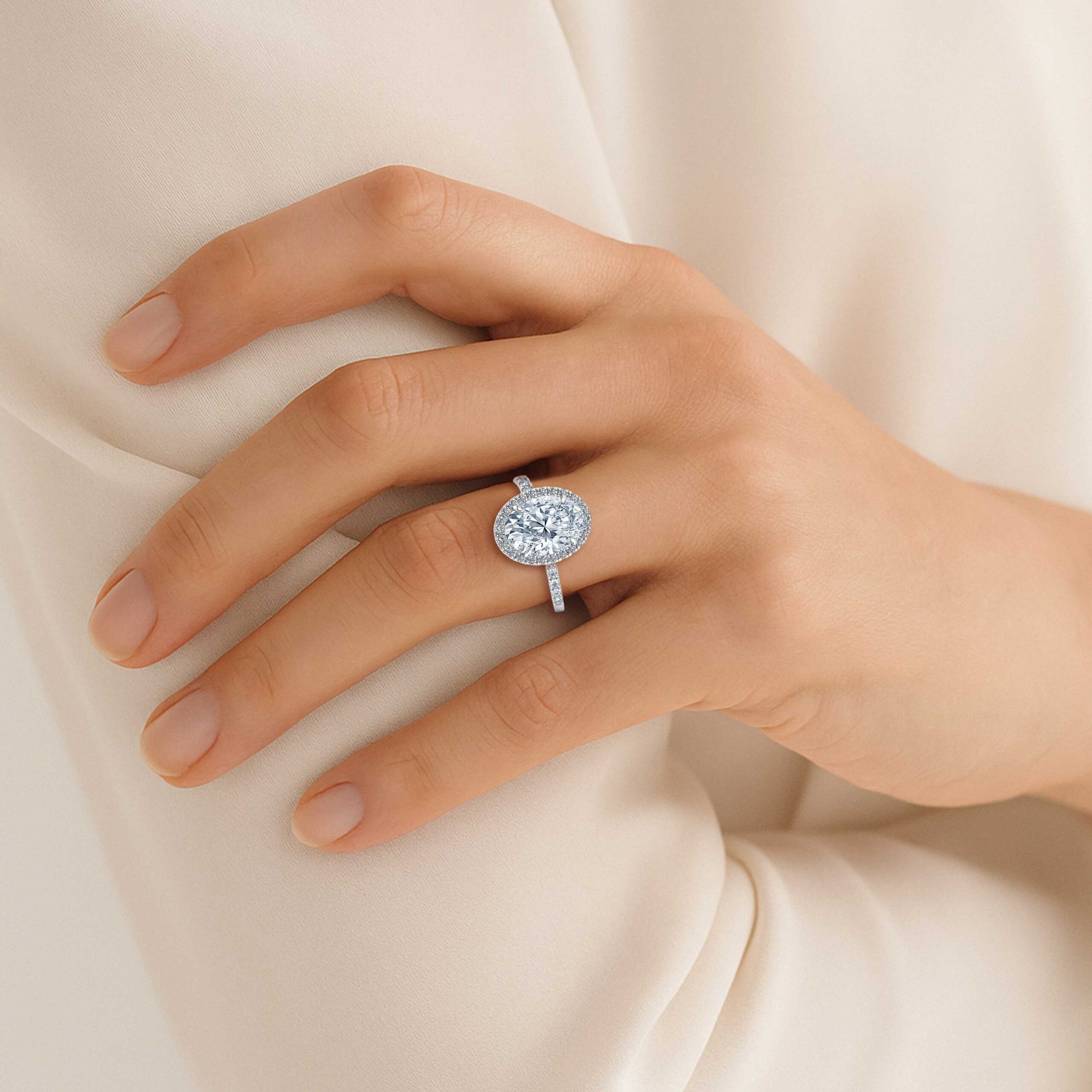 Oval Halo Lab Diamond Ring on Diamond Band